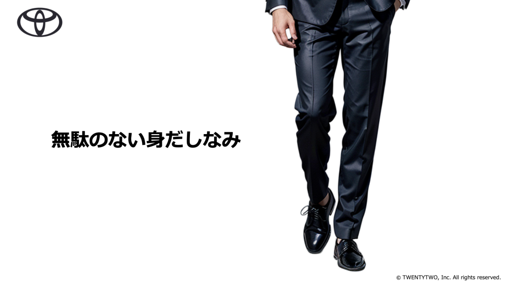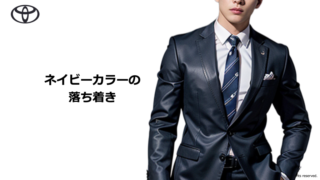 全体をネイビー系でまとめ、誠実さと堅実さを印象づけています。これはトヨタの「堅実経営」や安定した社風を象徴しています。