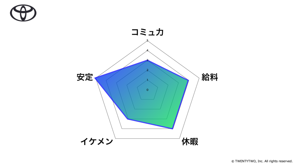 「トヨタ自動車」の男性社員を評価すると、どうなるでしょうか?