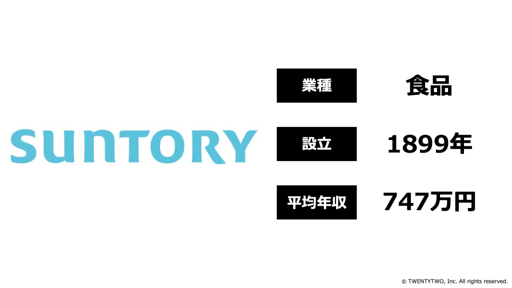 サントリーは、洋酒、ビール、清涼飲料水の製造・販売等を行う飲料大手。傘下に米ビーム サントリー。金麦に代表されるビール事業のシェア拡大に加え、アルコール離れの若者向けにノンアルコールビール領域に注力しています。