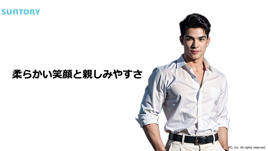 「サントリー」の男性社員を擬人化した場合、どのような外見になるでしょうか?