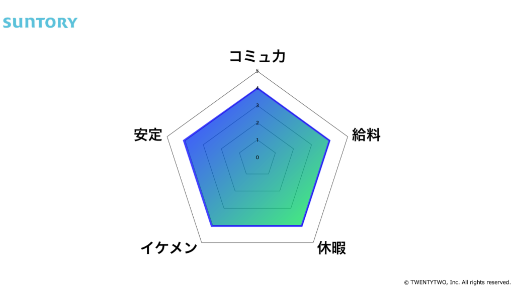 「サントリー」の男性社員を評価すると、どうなるでしょうか?