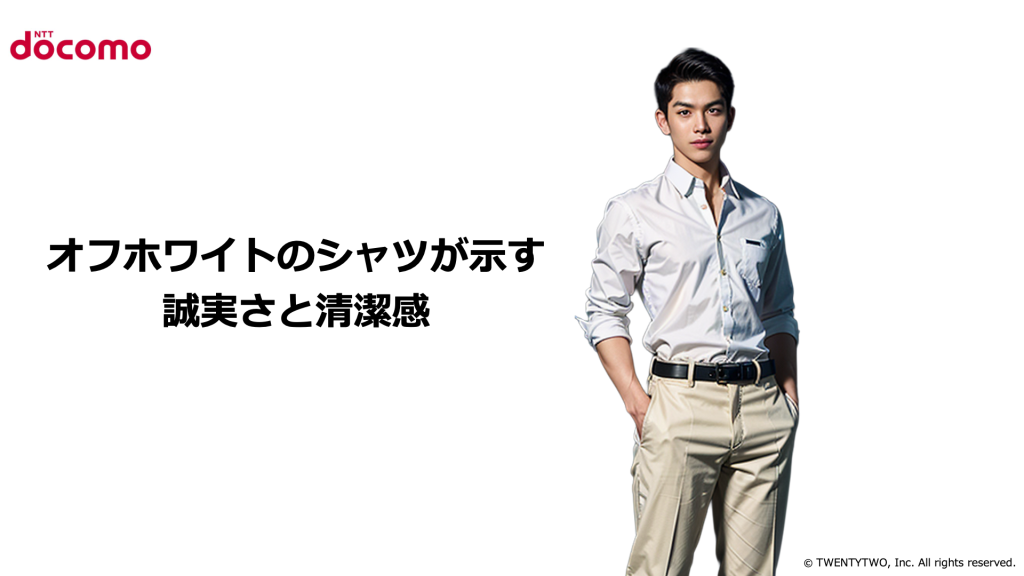 オフホワイトのシャツが示す誠実さと清潔感