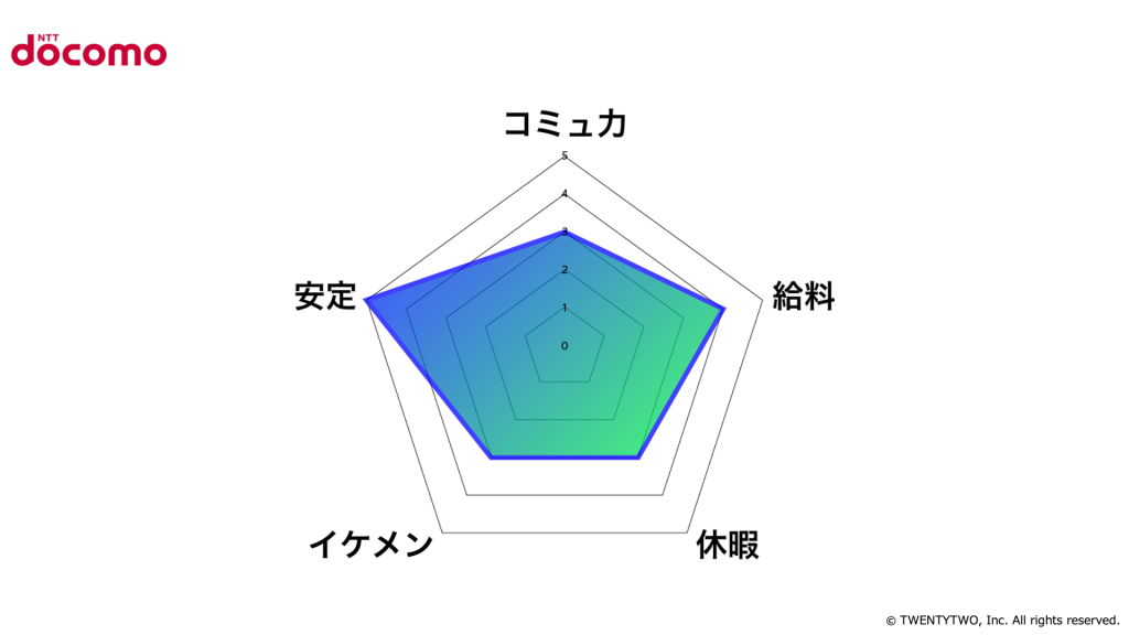 「NTTドコモ」の男性社員を評価すると、どうなるでしょうか?