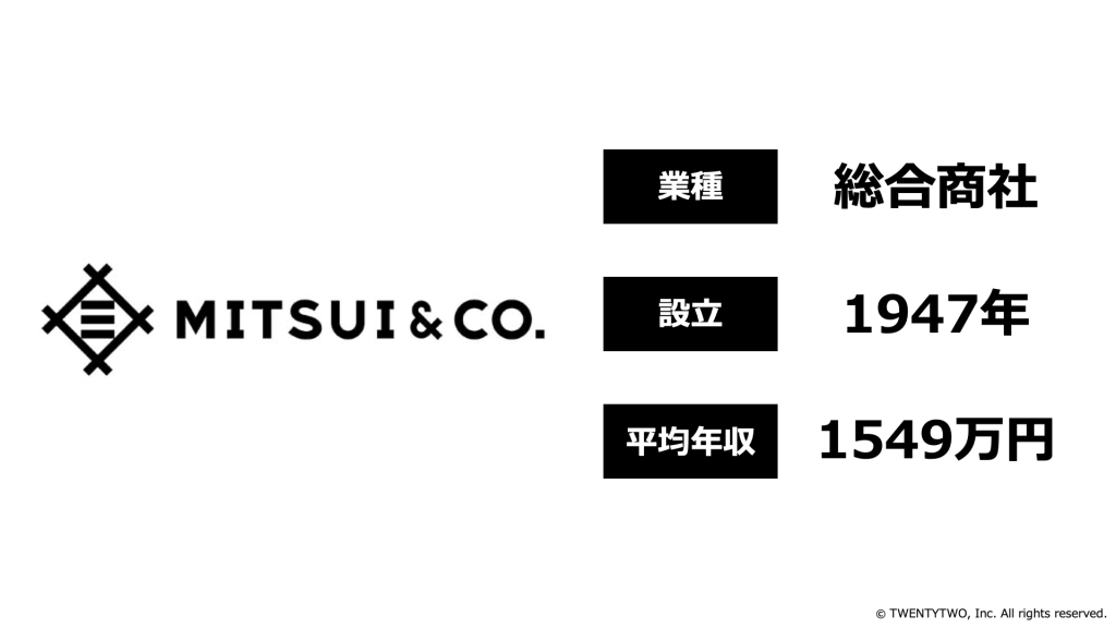 三井物産は、三井グループの中核企業で、総合商社大手。伝統的に鉄鉱石や原油などの資源分野が収益の柱だったが、近年はヘルスケアを中心とした生活産業事業に注力。非資源分野の開拓で不安定な収益構造からの脱却を目指す。
