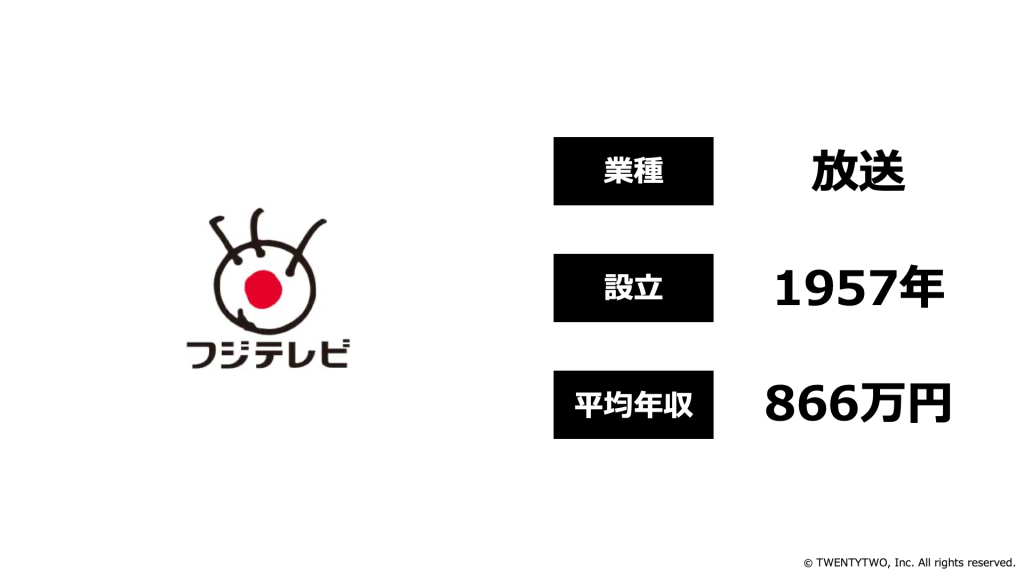 テレビ局の中でも給与水準は高く、30代で年収1,000万円に届く社員もいます。制作・営業・技術など職種によって差はありますが、賞与も安定して支給されます。ただし総合商社や外資と比べると一歩下がるため4です。