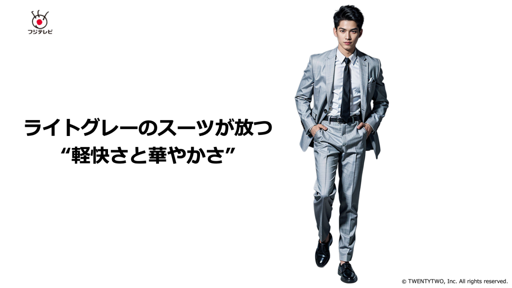 ライトグレーのスーツが放つ“軽快さと華やかさ”