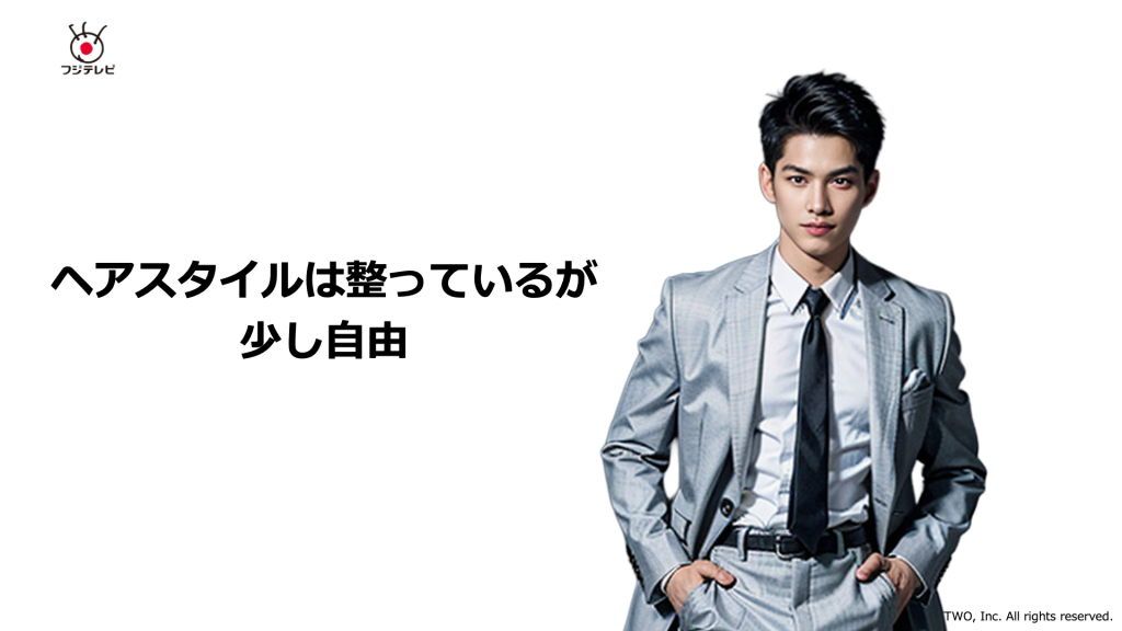 「フジテレビジョン」の男性社員を擬人化した場合、どのような外見になるでしょうか?