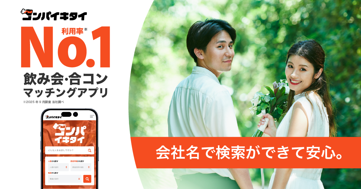 マッチングアプリ「コンパイキタイ」は、会社名で相手を検索できる新しいタイプのアプリです。