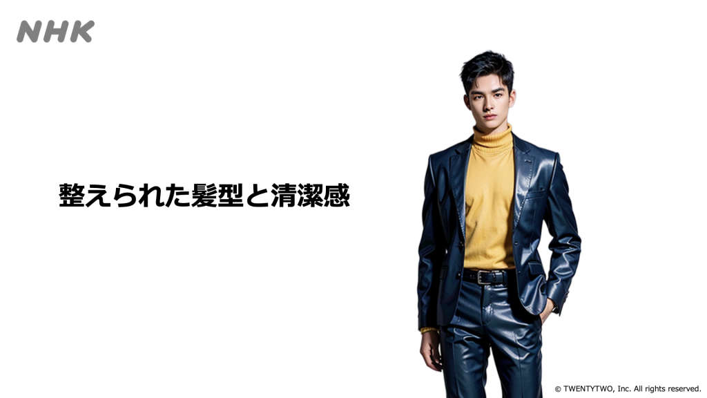 派手さのない濃紺スーツは、「公共放送としての中立性・信頼性・公平さ」を象徴しています。民放より華やかさは控えめで、真面目で誠実な印象を優先しています。