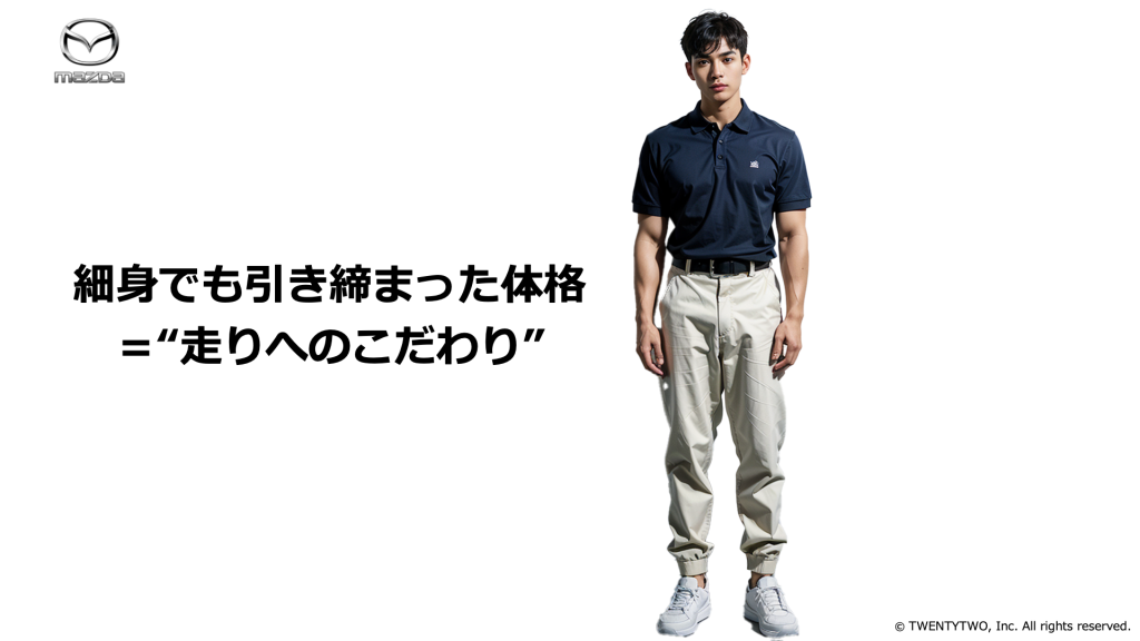 フレンドリーながら芯のある視線には、大手ではなく“広島発の挑戦者”として、トヨタ・ホンダとは異なる道を選び続けるマツダの誇りと気概が見えます。