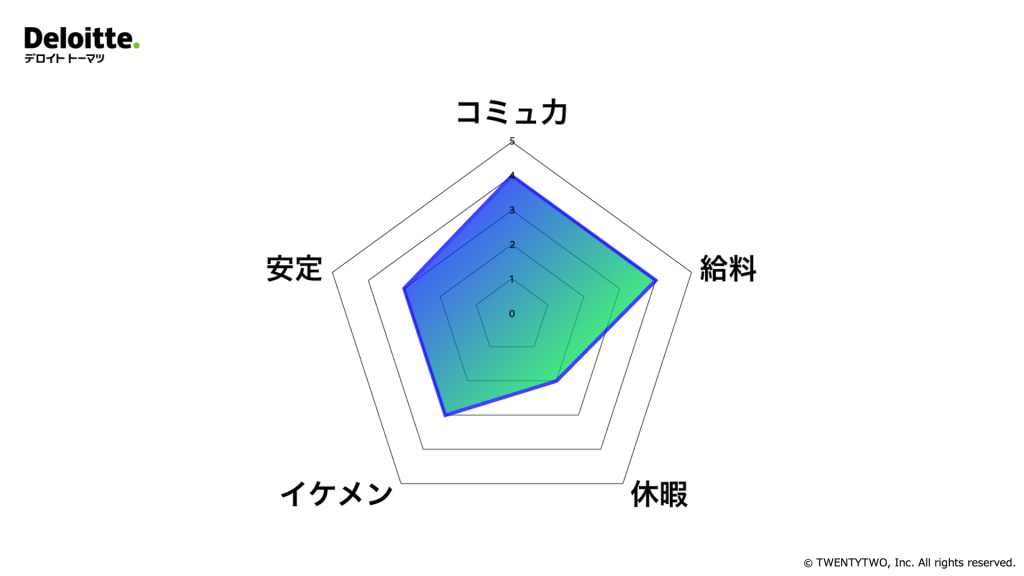 「デロイトトーマツコンサルティング」の男性社員を評価すると、どうなるでしょうか?
