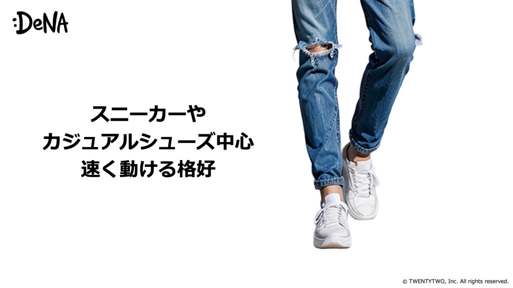 スニーカーやカジュアルシューズ中心―速く動ける格好