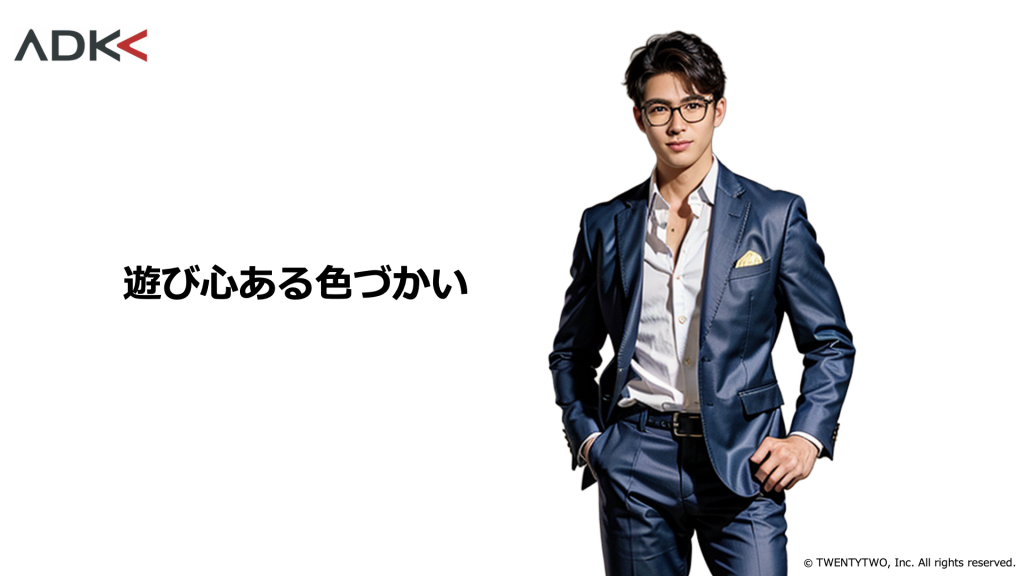 「ADK」の男性社員を擬人化した場合、どのような外見になるでしょうか?