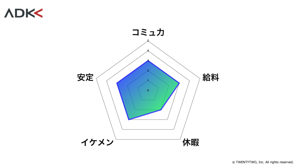 「ADK」の男性社員を評価すると、どうなるでしょうか?